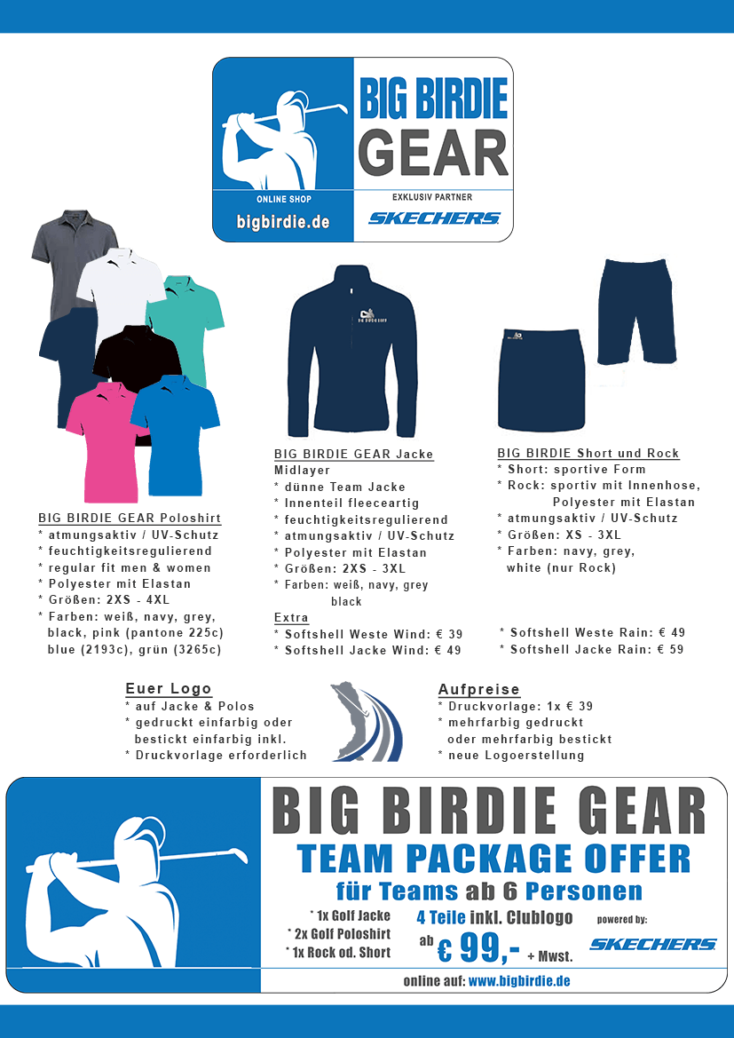 BIG BIRDE TOUR Golfer erhlaten 25% auf alle Artikel BIG BIRDIE Gutscheine unter Bemerkungen angeben.